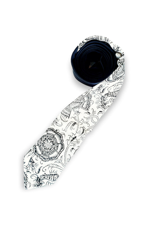 AFROZAN - Cravatta Artigianale Stampata a Mano -BW