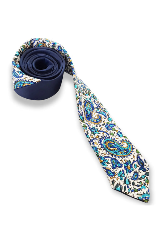 AFROZAN - Cravatta artigianale stampata a mano -NB - CRAVATTA PAISLEY