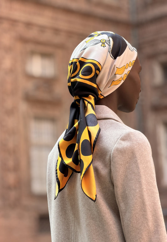 OROSI Luxury Silk Scarf – Multicolor Navy | AFROZAN